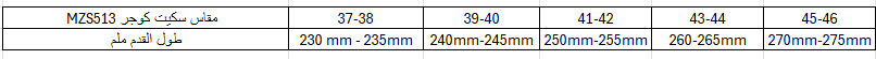 جدول مقاس سكيت كوجر MZS513