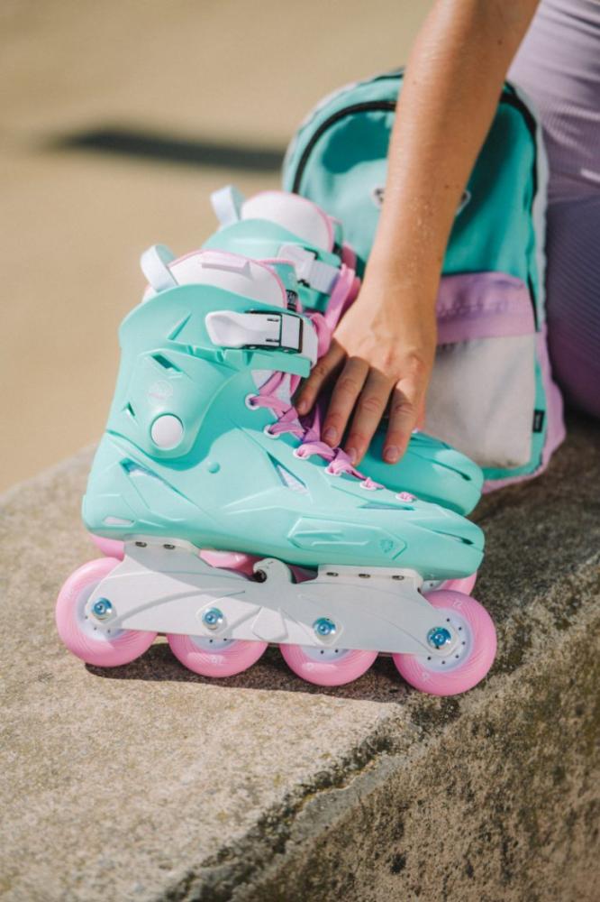 for those who want to do more of slalom roller blading the skate allows you to rocker up the front and back wheels and rocker down the middle wheels.